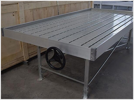潮汐式苗床的特點主體結構材質采用鋁合金邊框,骨架采用整體熱鍍鋅工藝,可左右移動較長距離,高度方向上可以進行微調,有利于潮汐式灌溉準確控制水位,具有防翻限位裝置,防止由于偏重引起的傾斜問題。可在任意兩個苗床間產生約0.6米的作業通道。苗床設計***大承受荷載40kg/㎡,本款苗床為潮汐式灌溉系統專門設計。