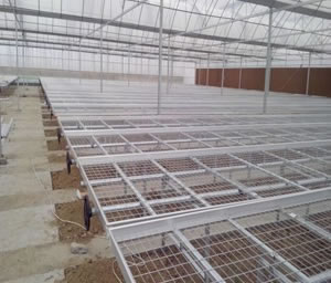 2、苗床邊框?yàn)殇X合金,支架部分的鋼管和苗床網(wǎng)都采用熱鍍鋅工藝,能在潮濕環(huán)境下長(zhǎng)期使用。