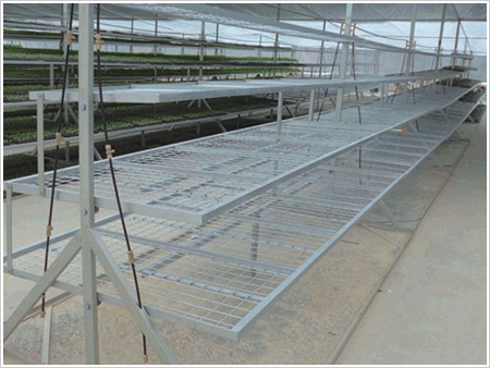 多層苗床網主要用于養花,植草植物,作物栽培,盆景養花等方面。可以根據溫室情況設計、安裝,適宜各種溫室環境。