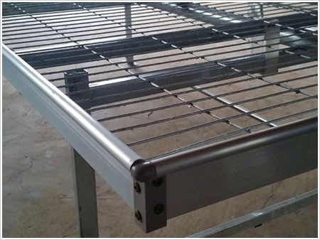 鋁合金苗床邊框主體結構材質采用鋁合金邊框,網格為130㎜×30㎜熱鍍鋅材料,防腐性能高、承重能力好、壽命長等特點。 可左右移動較長距離,高度方向上可以進行微調。具有防翻限位裝置,防止由于偏重引起的傾斜問題??稍谌我鈨蓚€苗床間產生約0.6或0.8米的作業通道。溫室配置移動式苗床數量根據育苗或生產實際用的溫室面積來定。苗床網片有熱鍍鋅型、浸塑型、熱鍍鋅絲型、編織型、加筋型、高反光型、耐酸堿型、溫室骨架網。本產品采用的網片具有耐腐蝕、抗老化、耐酸堿、不褪色?表面平整、光亮、手感舒適等優點。壽命長達20年以上。網片材質為優質低碳鋼絲、鍍鋅絲、不銹鋼絲、PVC涂塑絲,其編制方式采用排焊而成。 主要用于溫室大棚蔬菜、花卉育苗等。