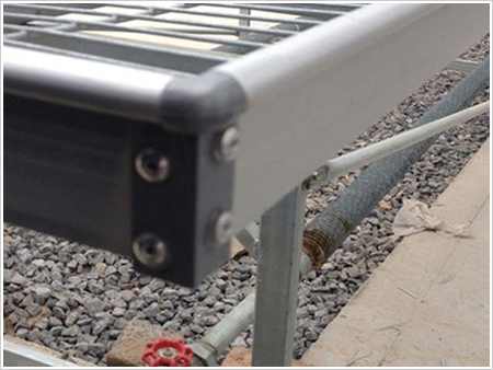 移動苗床是由苗床腿架、苗床邊框(鋁合金材質)苗床網片(網孔30*130、絲徑3.0mm、3/4mm也可定做)苗床橫支撐、斜拉桿、苗床手輪、滾動管、鋁合金連接片、苗床網連接片等苗床配件組成。